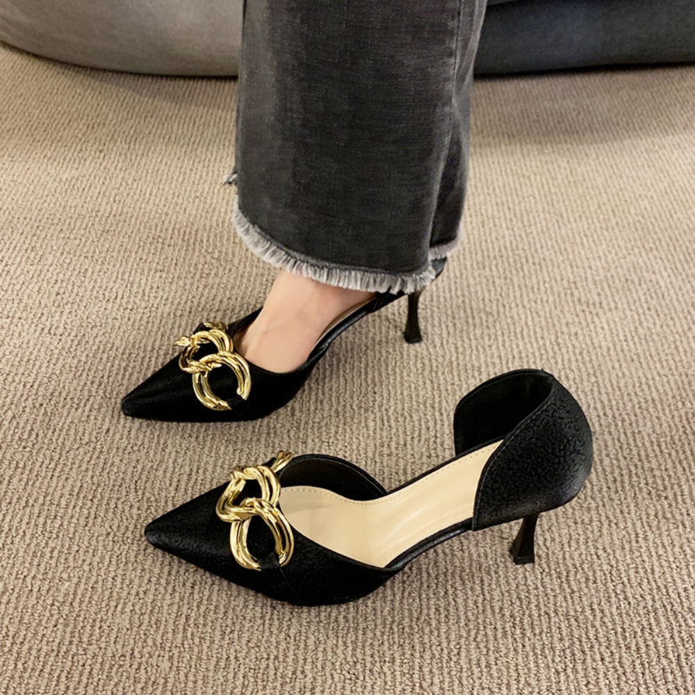 프니체 8cm 체인 사이드오픈 스틸레토 하이힐 2color
