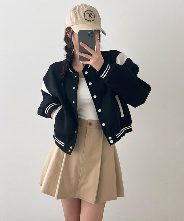 💖교복템💖 심블 크롭 배색 바시티 자켓 / 야구 잠바 점퍼 블루종 간절기 봄 가을 단추 루즈핏 숏