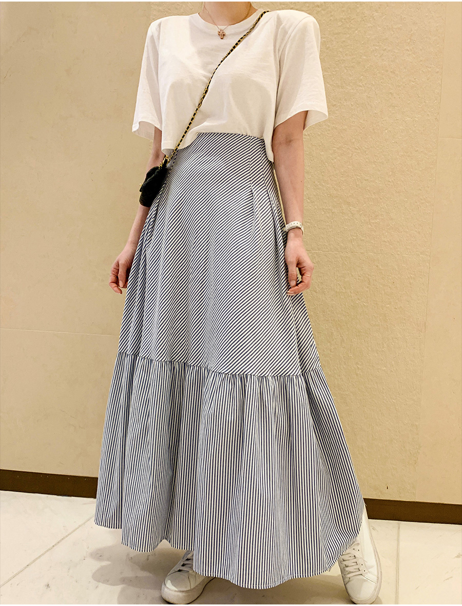 호피언니 잔잔 스트라이프 사선 A라인 롱 스커트