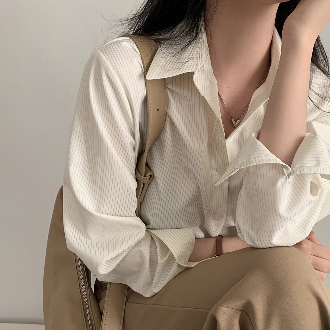 멜로디 스트라이프 크롭 셔츠,남방 블라우스 - nb