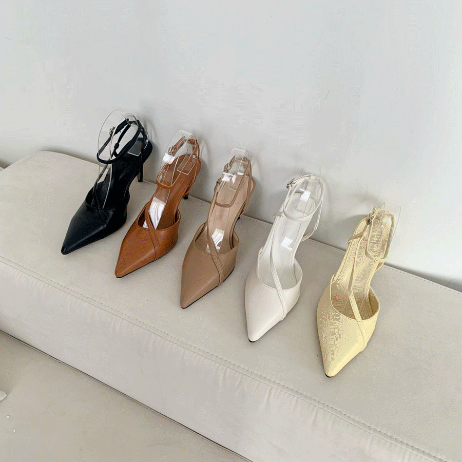 델리 페미닌 사선 스트랩 스틸레토 슬링백힐 (5color/8cm)
