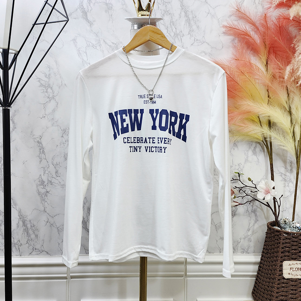 여자 라운드 티셔츠 영문 레터링 긴팔티 3color