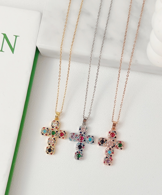 크로스 청금석 크리스탈 십자가 써지컬 십자 레이어드 펜던트 목걸이