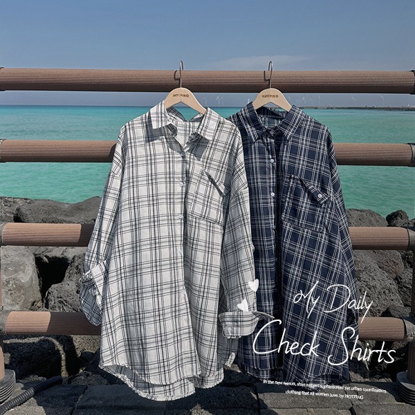 [8천장돌파/살안타템/에어컨차단][MADE] 버닛 루즈핏 여름 체크셔츠(44~110) (데일리-캐주얼-빅사이즈셔츠-빅사이즈긴팔셔츠-여름셔츠-루즈핏셔츠-체크남방-체크긴팔셔츠-장마룩-장마템-살안타셔츠)
