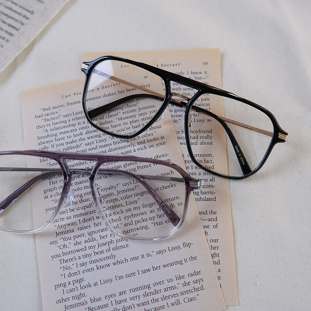 오버사이즈 뿔테 레트로 스타일의 투브릿지 안경