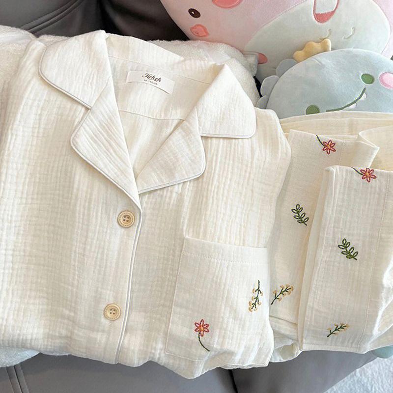 여성파자마세트 화이트 면잠옷 수면잠옷 여자바지파자마 홈웨어