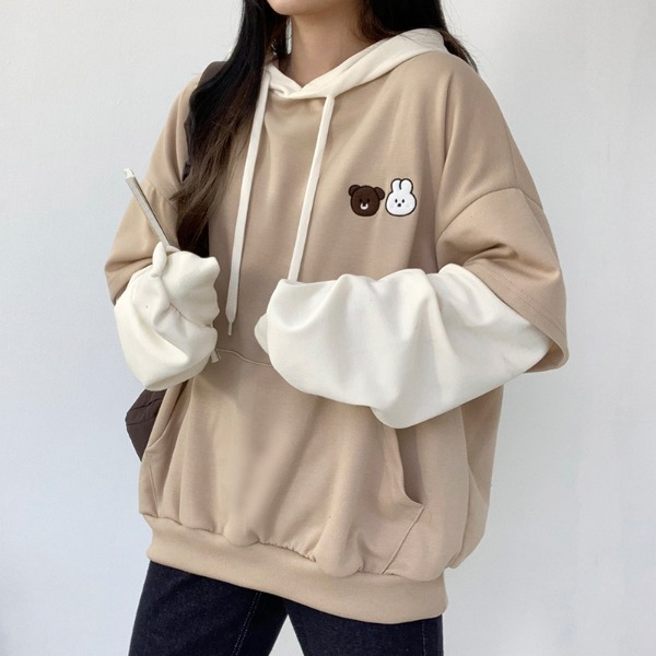 기모추가🔥 버니 베어 레이어드 후드티 3컬러 (오버핏,배색,레이어드)