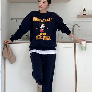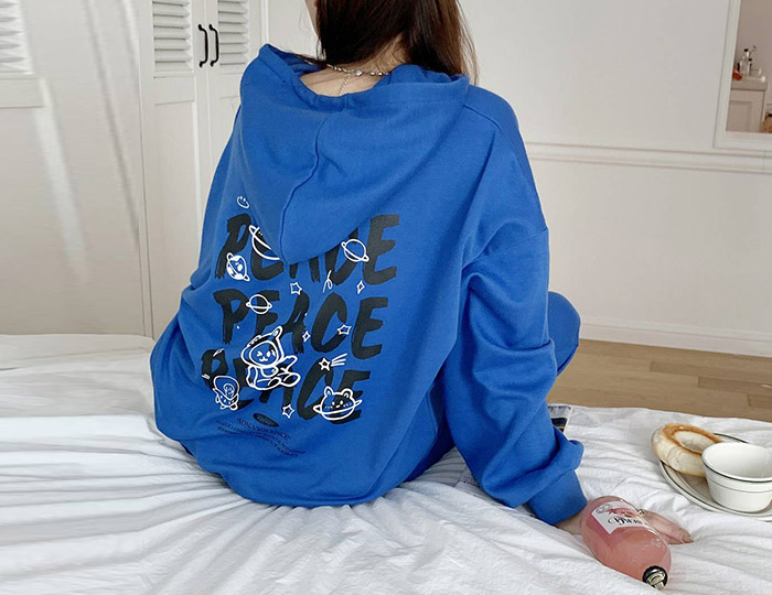 베어 프린팅 후드 맨투맨 조거 팬츠 세트
