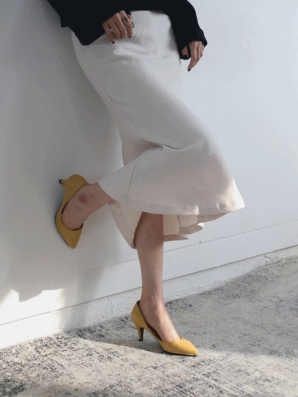 국내제작 골드 팁 바렐 사이드 오픈 미들 힐 펌프스 구두