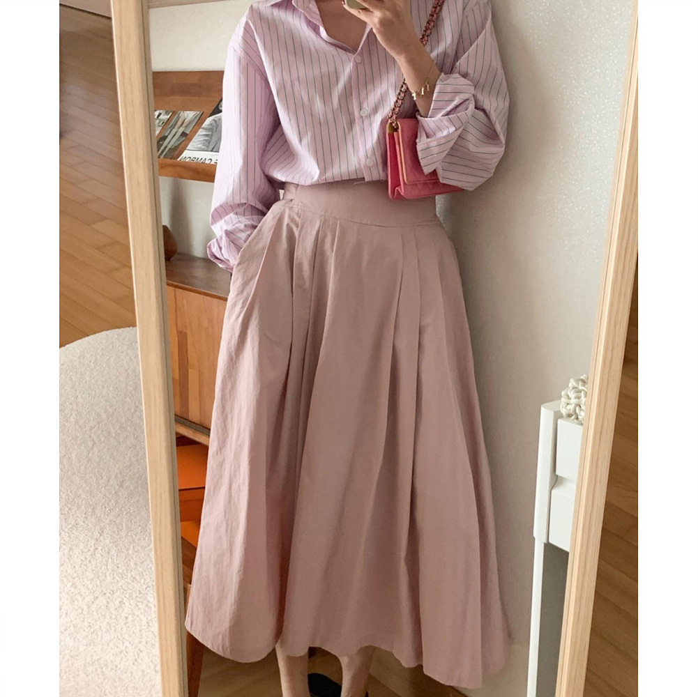 비죠 버클 플레어 스커트 훌스커트 바스락 롱스커트