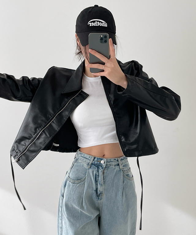 💖미친핏감💖 베아 베이직 심플 카라 레더 자켓/데일리 봄 가을 스트링 기본 가죽 점퍼