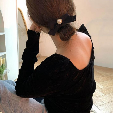 [2 TYPE] 로맨틱 리본 블랙 헤어 머리끈 머리핀