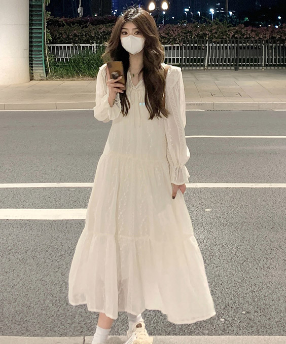 공항패션 공항룩 셀프촬영 여리핏 레이스 쉬폰 롱 원피스
