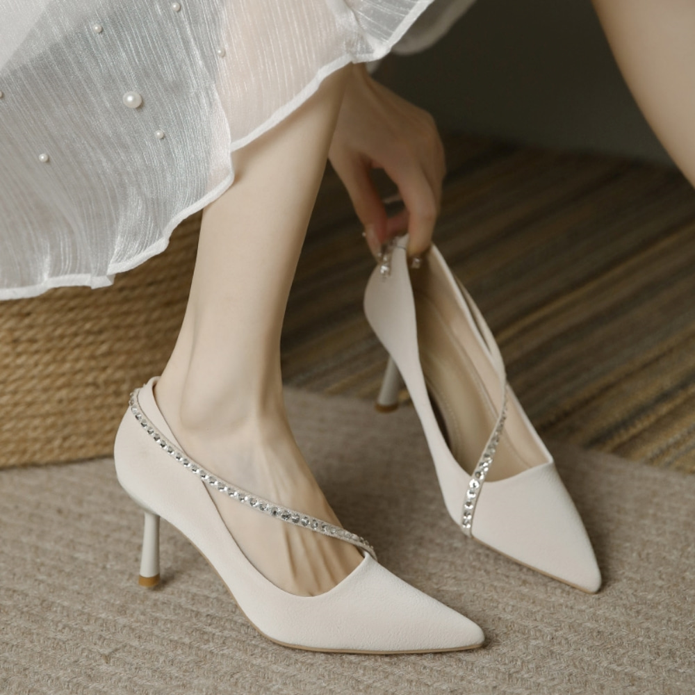 브로넬 5,7cm 스틸레토 큐빅 스트랩 펌프스 미들힐 2color
