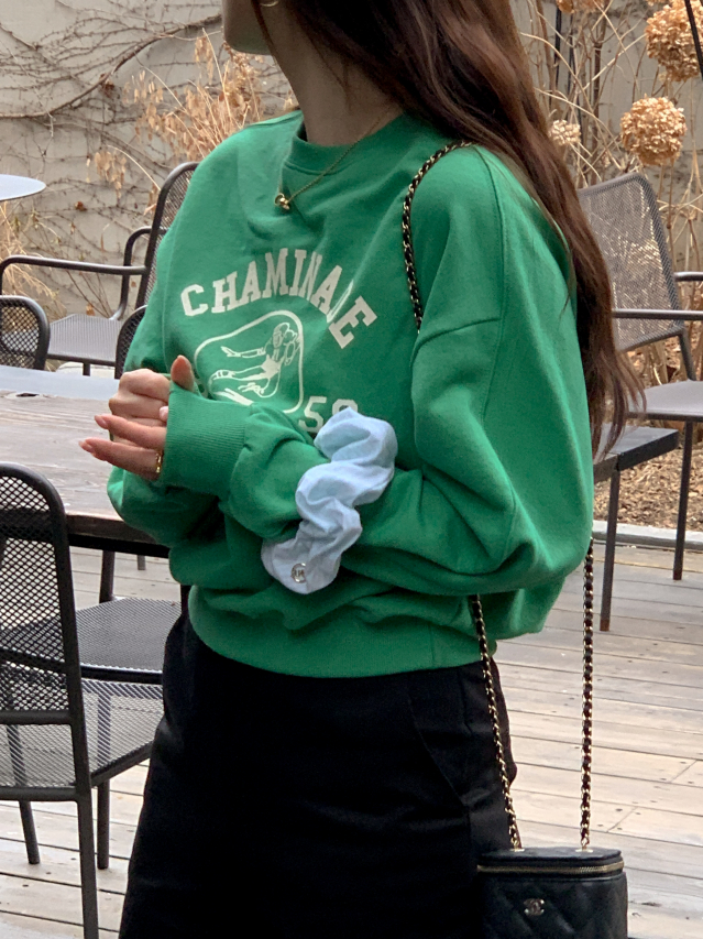 데이턴 초록색 오버핏 여성 맨투맨 (2c)