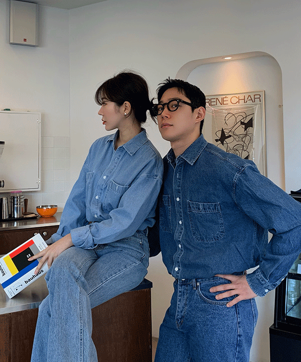 [남여공용/데일리템/루즈핏♥] 우드 데님 청 오버핏 청 셔츠 남방