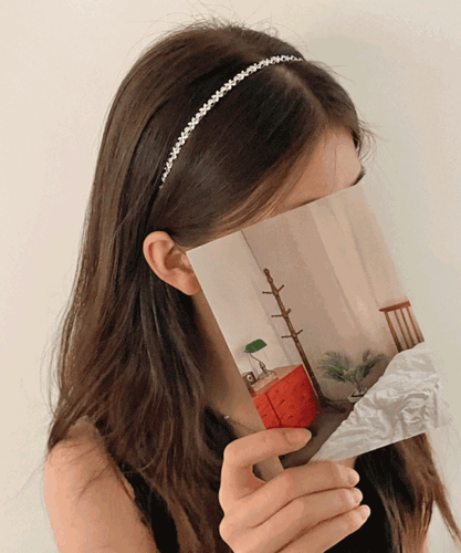 [당일출고] 은빛 실버 플라워 심플 메탈 큐빅 머리띠 헤어밴드