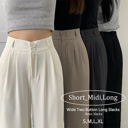 [🌴재구매강추/숏,기본,롱/기장선택] 크엘 투버튼 하이웨스트 와이드 투핀턱 슬랙스 (4color) [키작바지/가을슬랙스/오피스룩/하객룩/벚꽃]
