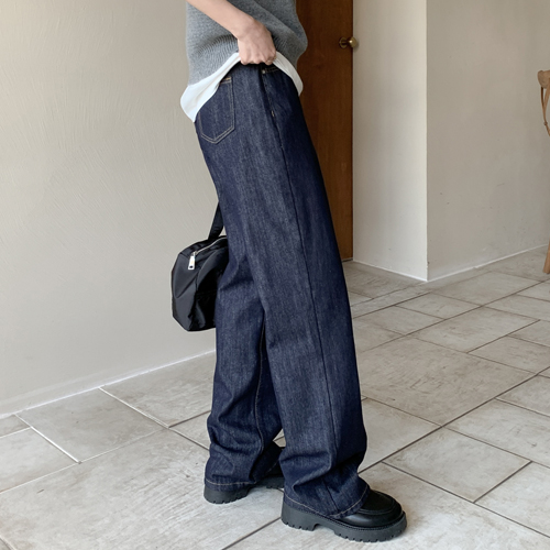 ❄️[와이드팬츠/겨울팬츠] 샌더 non-fade 와이드 롱 생지 데님 팬츠