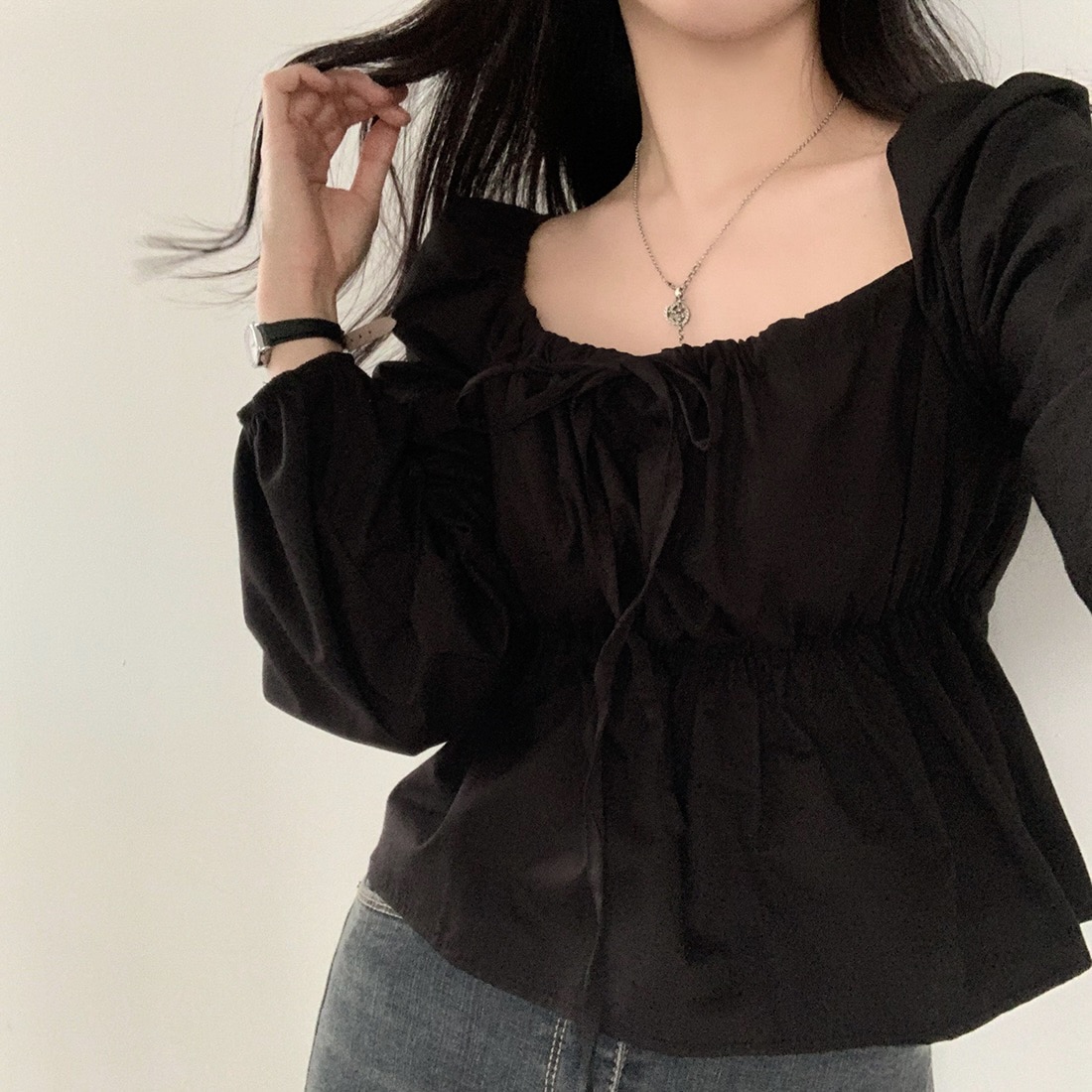 투웨이 리본 셔링 긴팔 블라우스 - bl