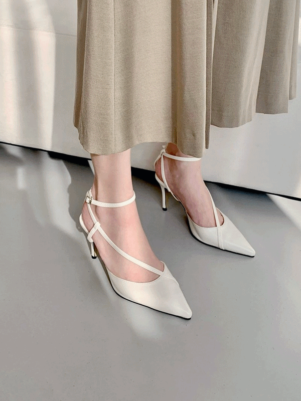 스틸레토 버클 정장 구두 앵클 스트랩 슬링백 힐