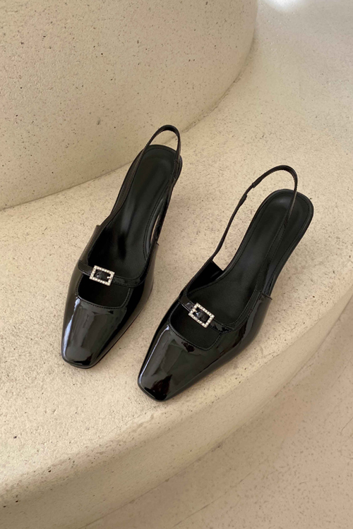 에나멜 스퀘어토 큐빅장식 슬링백힐 6cm