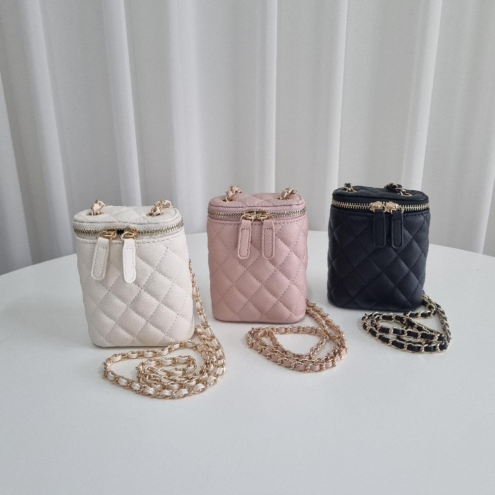 샤담샤담 슬림 스퀘어 누빔 퀼팅 사각 체인 스트랩 미니 크로스백 포인트 가방 3 Color