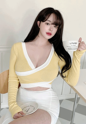 *은근섹시* 시즌3 순수 배색 크로스 크롭티
