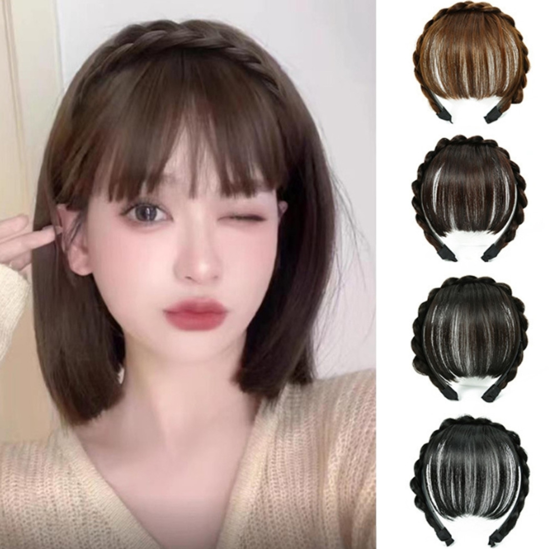 [다이나몰]앞머리 포인트 가발 헤어뱅 스타일 땋은머리띠