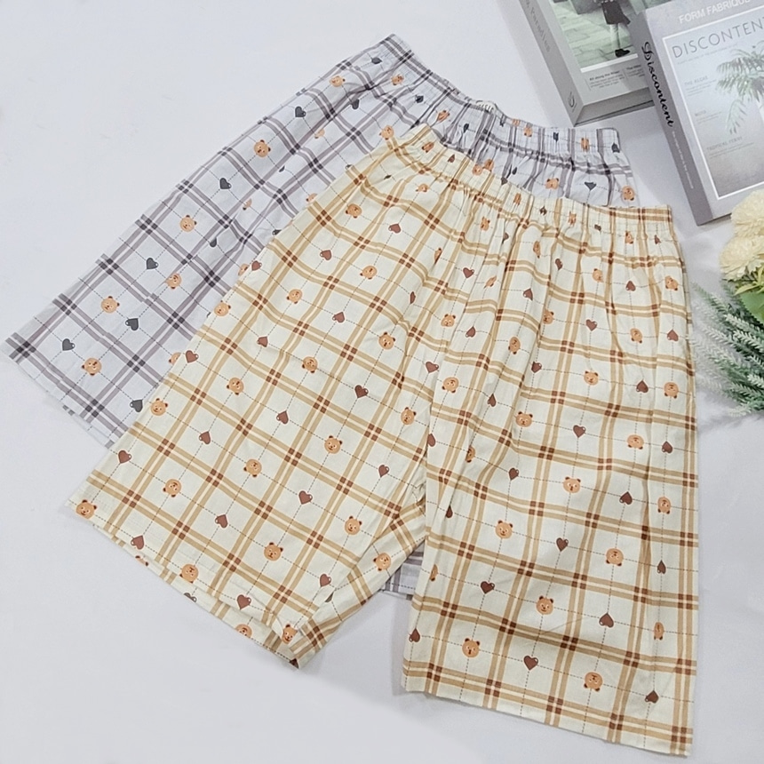 국산 순면 하트 곰돌이 잠옷바지 3부 5부 9부 하트곰 커플 홈웨어