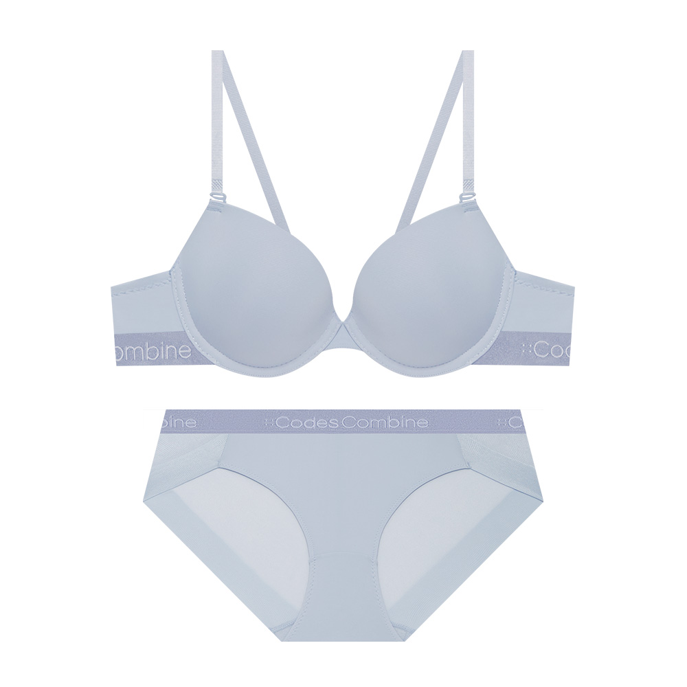 베이직 퓨징 로고아웃밴드 브라 팬티 세트_라이트블루