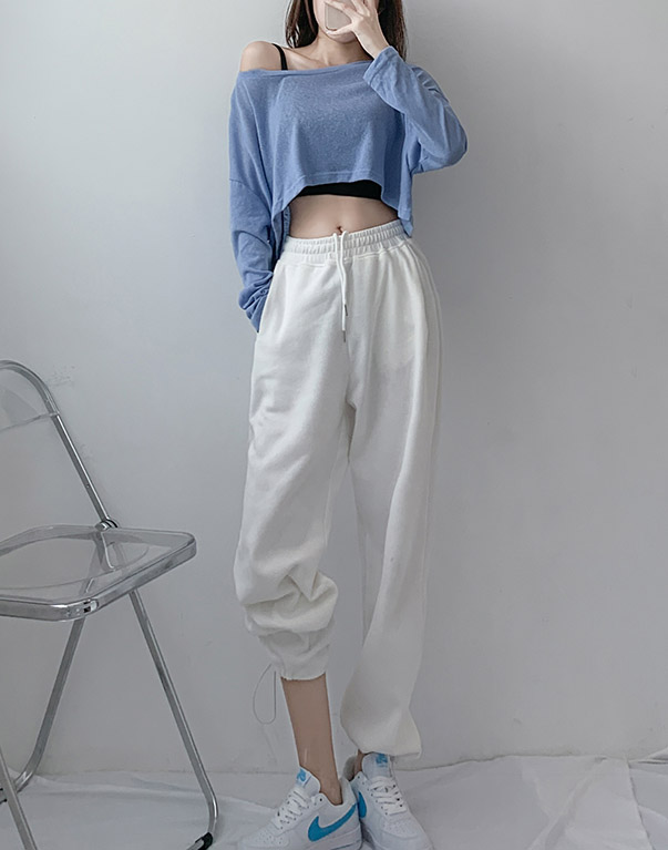 무용 연습복 슬림 크롭 긴팔티/하이웨스트 밴딩 바지 코디세트 댄스복
