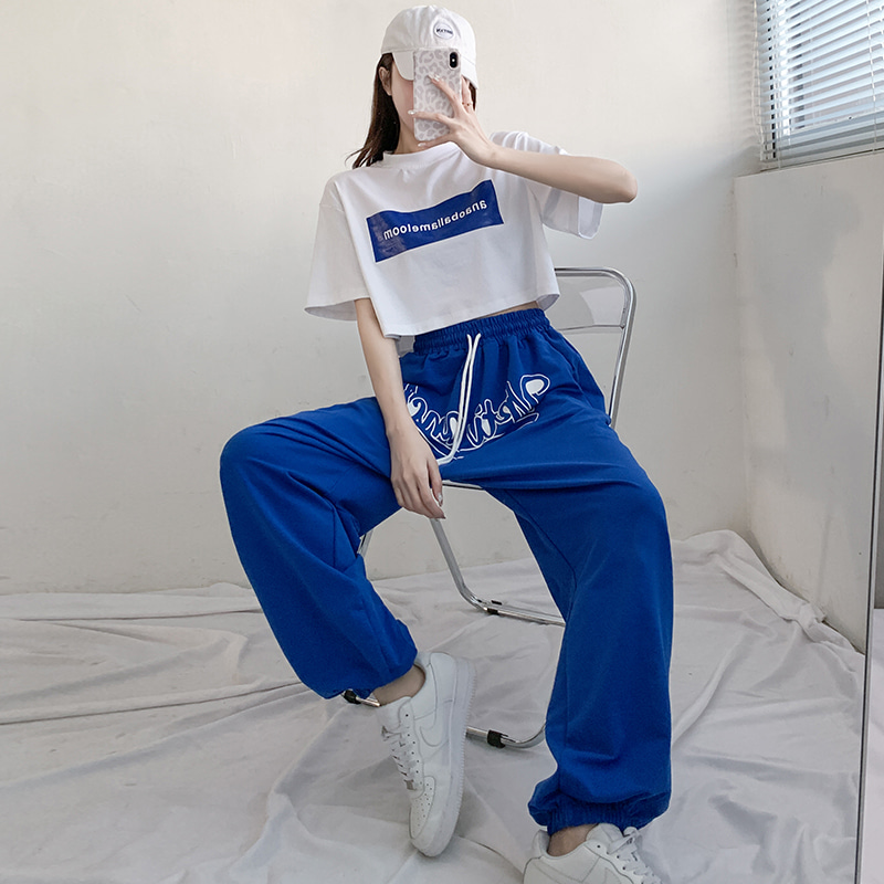 댄스복 힙합 스포티 크롭 반팔 티셔츠/하이웨스트 밴딩 팬츠 코디세트