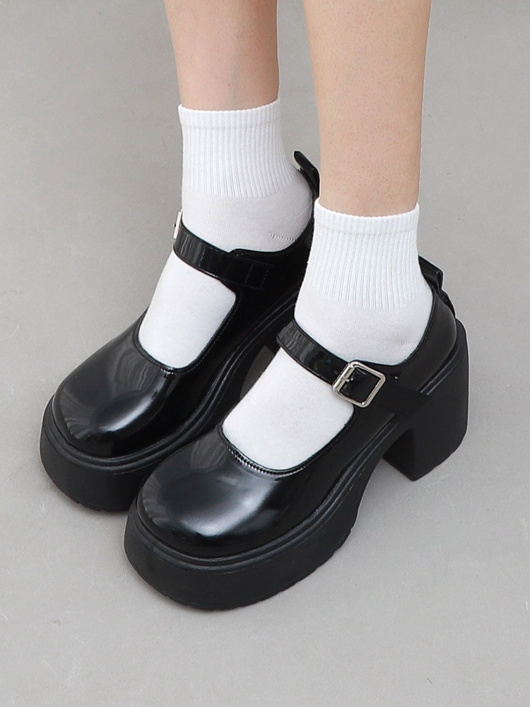 와이드 라운드 메리제인 통굽 청키힐 로퍼(9.5cm) 11427