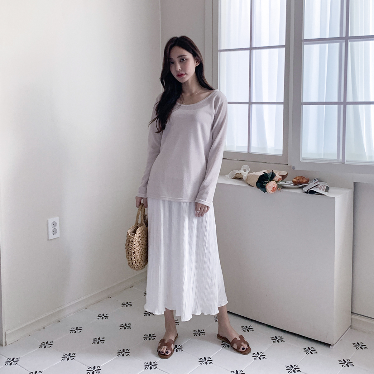 사기가 베이직 라운드넥 린넨 긴팔 티셔츠