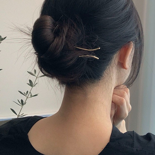 왕 메탈 U자 비녀 헤어 머리 유자핀