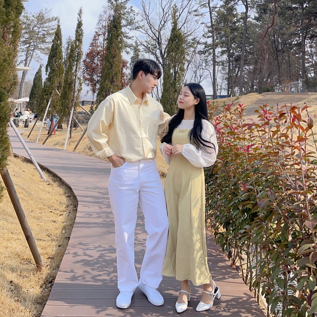 [모델소장💛] 노랑 뷔스티에 원피스 봄 제주도 신혼여행 커플 시밀러룩