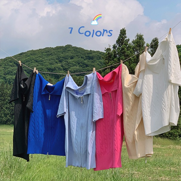 [반팔버전][MADE] 헤브링 꽈배기 투웨이 니트집업가디건(44~110) (베스트-여름-가을-투웨이-데일리-출근룩-꽈배기니트-카라-니트-집업 )