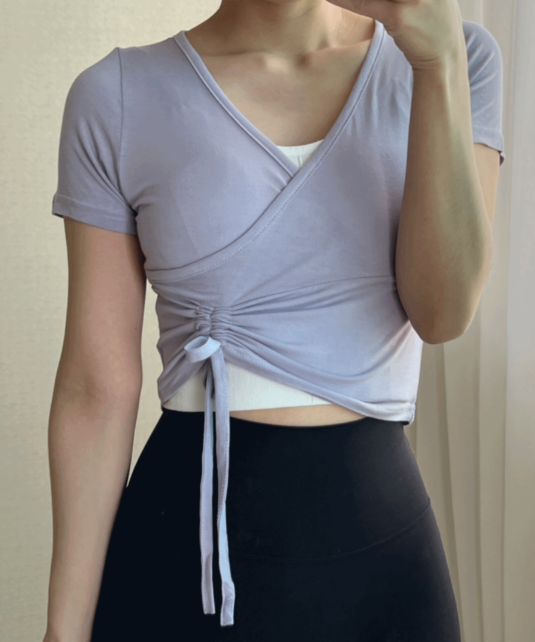 [여리여리/발레코어]필라테스 운동복 요가복 헬스복 상의 커버업 크롭 반팔 스트링 랩스타일 티셔츠 발레리나티