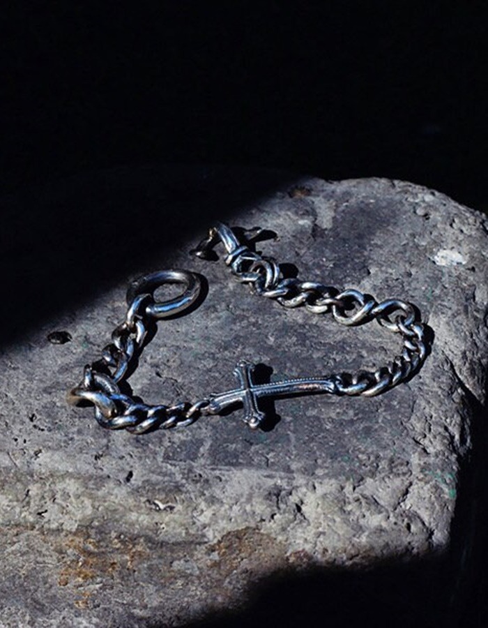 [하보쥬얼리] 925 스텔링 실버 핸드메이드 십자가 믹스 체인 후크 팔찌