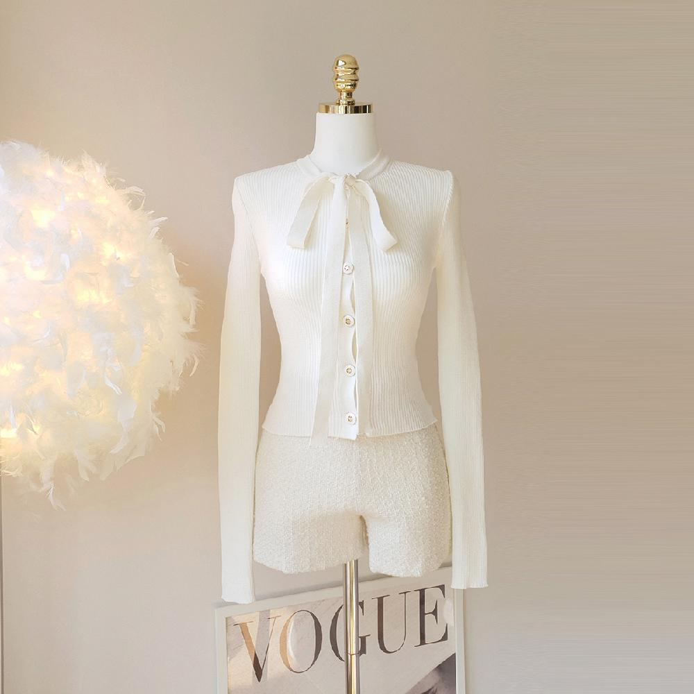 로라 롱 리본 타이 슬림 니트 가디건 (5Color)