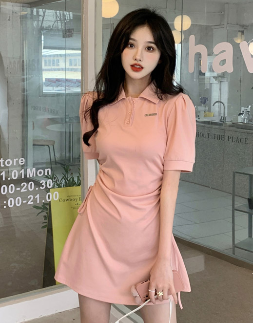 공항패션 공항룩 스포티 카라 셔링 미니 여름 원피스