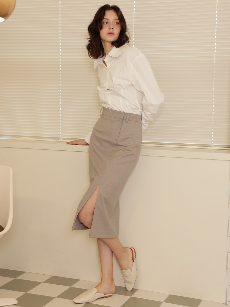 [배우 '민도희' 착용][제넷 펜슬 스커트_그레이 베이지]Jennet Pencil Skirt_Grey Beige