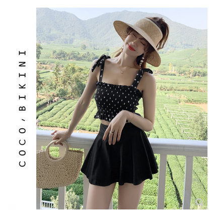 도트 블랙 비키니 원피스 수영복 학생 호텔 수영장 풀빌라 온천 해변 체형커버 BJ0044