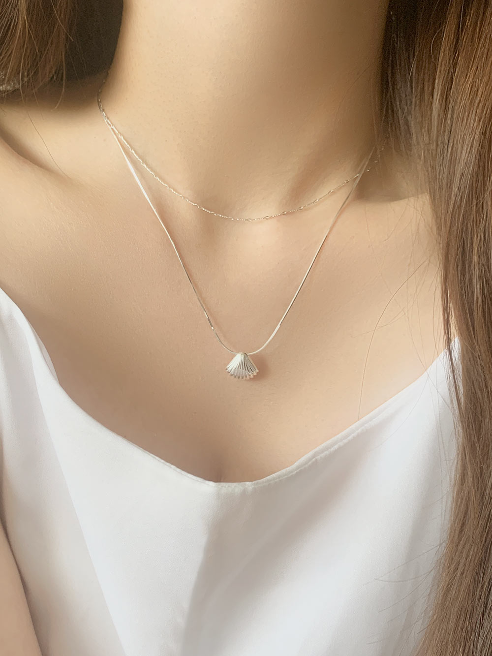 925실버 뱀줄 조개 팬던트 은목걸이 / 클램 데일리 여자 네크리스