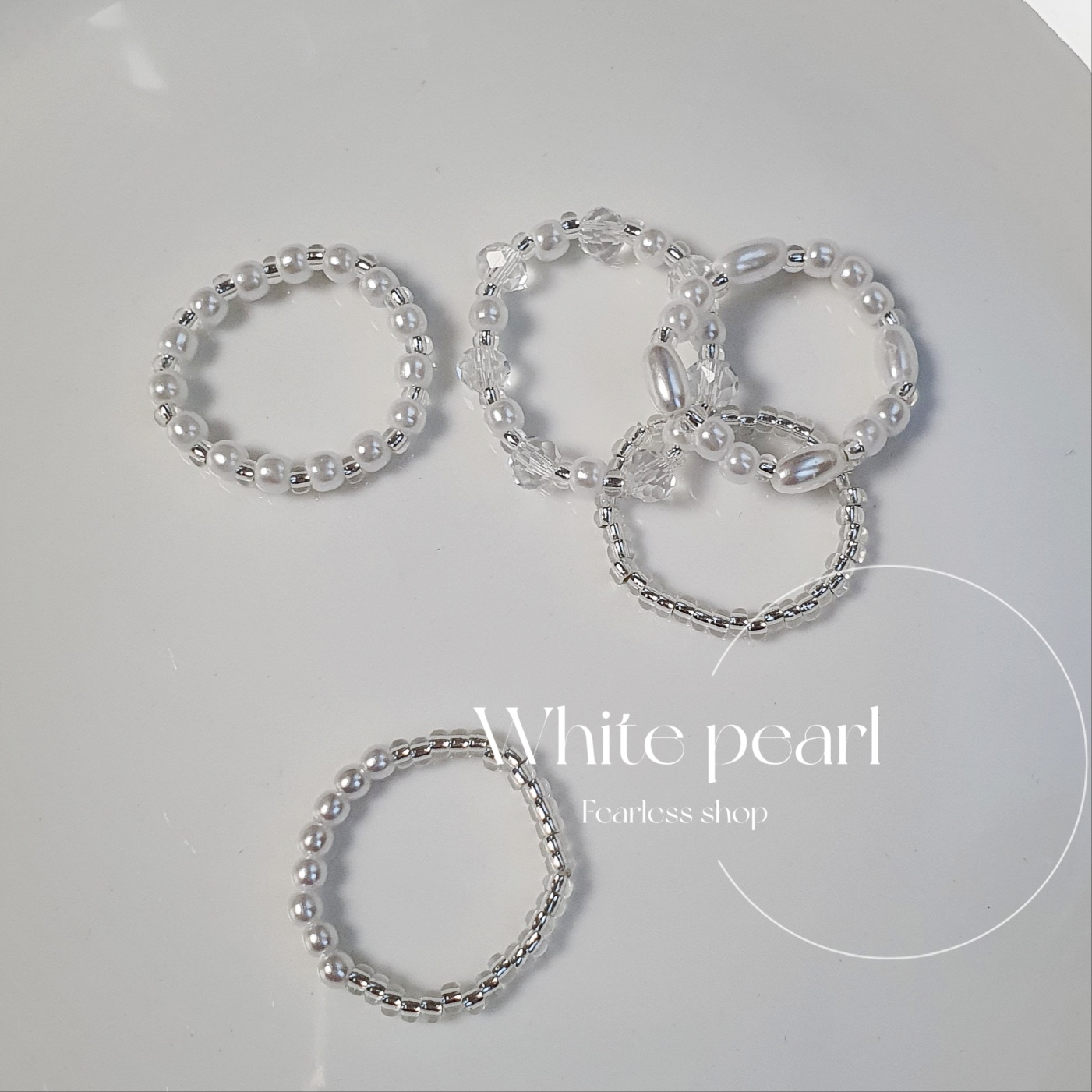 [5개세트] 데일리 베이직 레이어드 실버 진주 반지 세트 2color 실 민자 데일리 무알러지 우정 선물 실버 골드