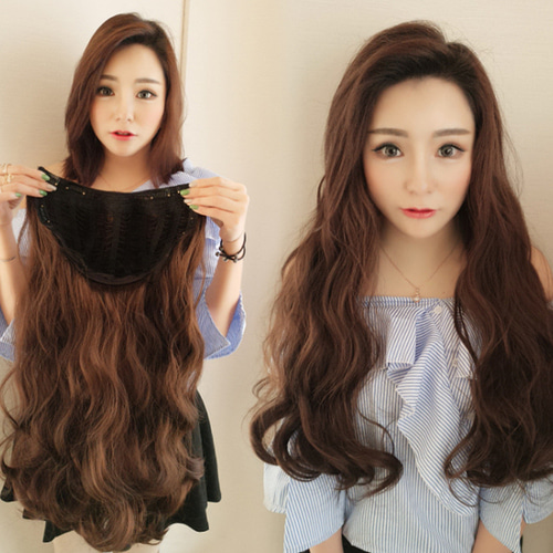 u 자 긴머리 웨이브 헤어 스타일 오픈 부분 반 가발 루즈펌