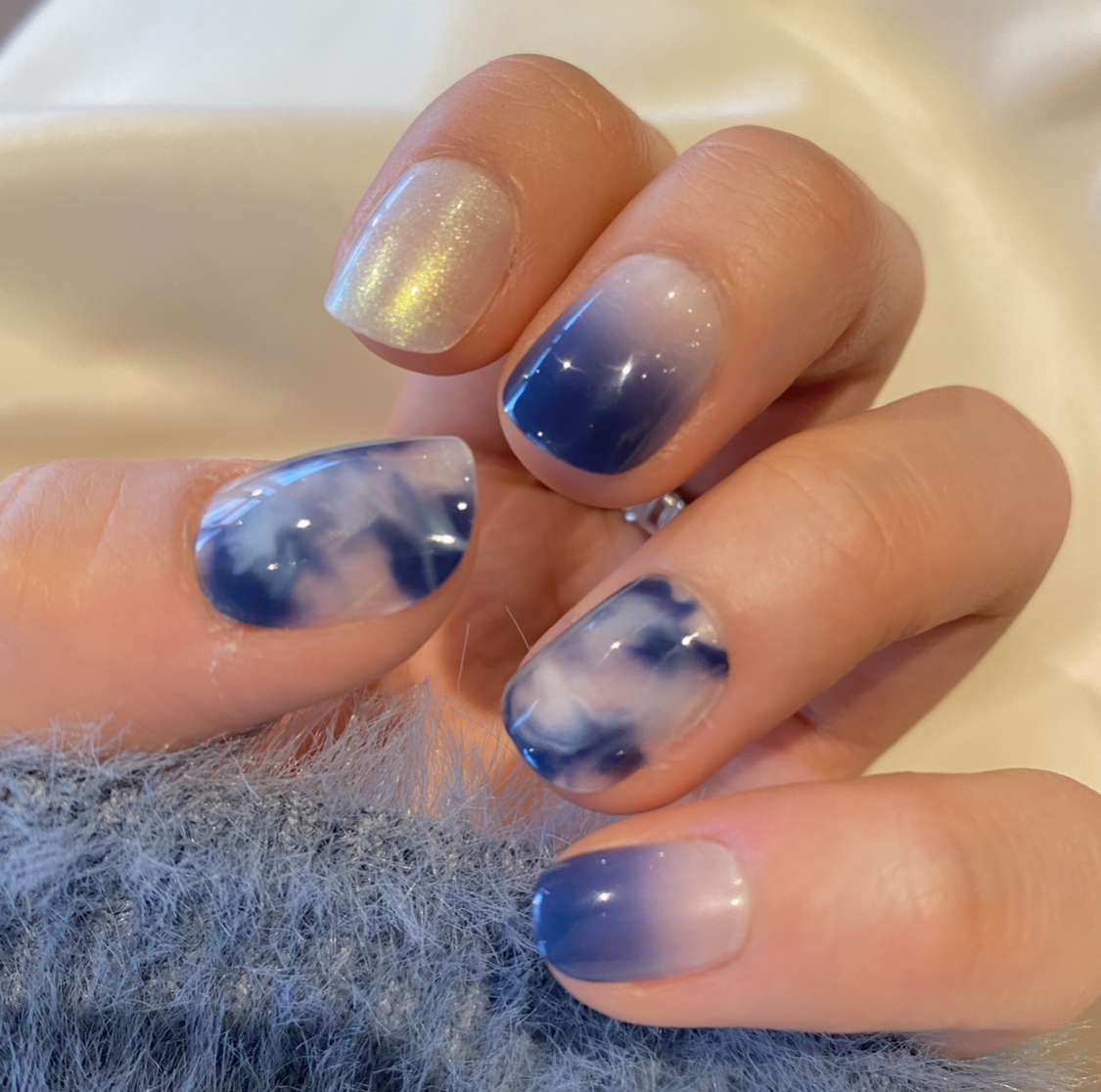 펄 블루 마블 네일 화이트 진주 그라데이션 네일팁