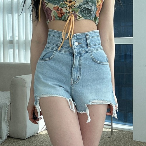 연청 하이웨스트 데님 찢청 여름 청반바지 핫팬츠 (3size)