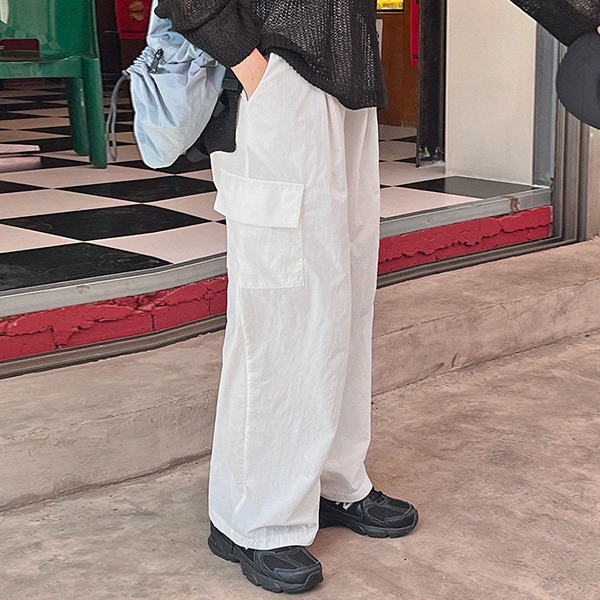 [MADE] 프로미 핀턱 빅 카고포켓 밴딩 와이드팬츠(44~110) (신상-핀턱팬츠-체형커버-나일론팬츠-썸머팬츠-밴딩팬츠-캐주얼-데일리룩-마실룩-트레이닝바지-추리닝바지-츄리닝바지-장마룩-장마템-장마철-흠뻑쇼-페스티벌)